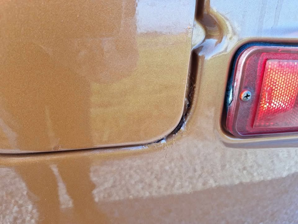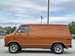 The original paint was Indian Bronze, and this van was repainted sometime in the 80's - this orange is slightly brighter than the OG Indian Bronze. No holes cut into the roof, or the side panels. This van is 99% rust-free, top to bottom, besides one very small spot on the gas door opening - see photo. Every other square inch of this van - including the roof and undercarriage is bone dry. The passenger door looks to have been replaced in the 80's as well - the interior paint on the passenger door has a few spots where the paint peeled off, likely due to improper prep work. The exterior paint on the passenger door is fantastic shape, and clearly, proper prep work was performed.