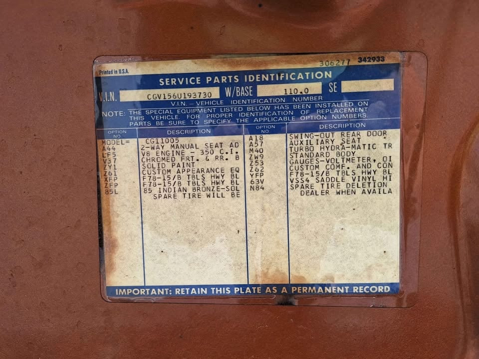 This van has the original 350 V8 paired with the original 350 trans - manual steering, and manual brakes. Aftermarket cruise control was installed by the OG owner, and works PERFECT. I had a complete tune-up performed August 2023, and the entire A/C system gone through, plus updated to R134 - the A/C works GREAT - just spent $1,500 this month alone on the above items.