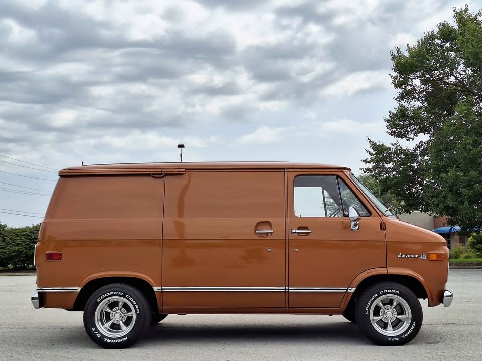 Last winter, I had the rear drums rebuilt, and rear brake lines completely redone with custom copper lines. All four shocks were replaced in winter 2022 with KYB shocks. Receipts to prove all work, that was completed by my mechanic. The van runs fantastic, and hauls ass. The wheels (American Racing Torq Thrusts) and Cooper Cobra rubber are brand new, and have less than 400 miles on them, front and back. The rear wheels are 15x10s, and the fronts are 15x8s.