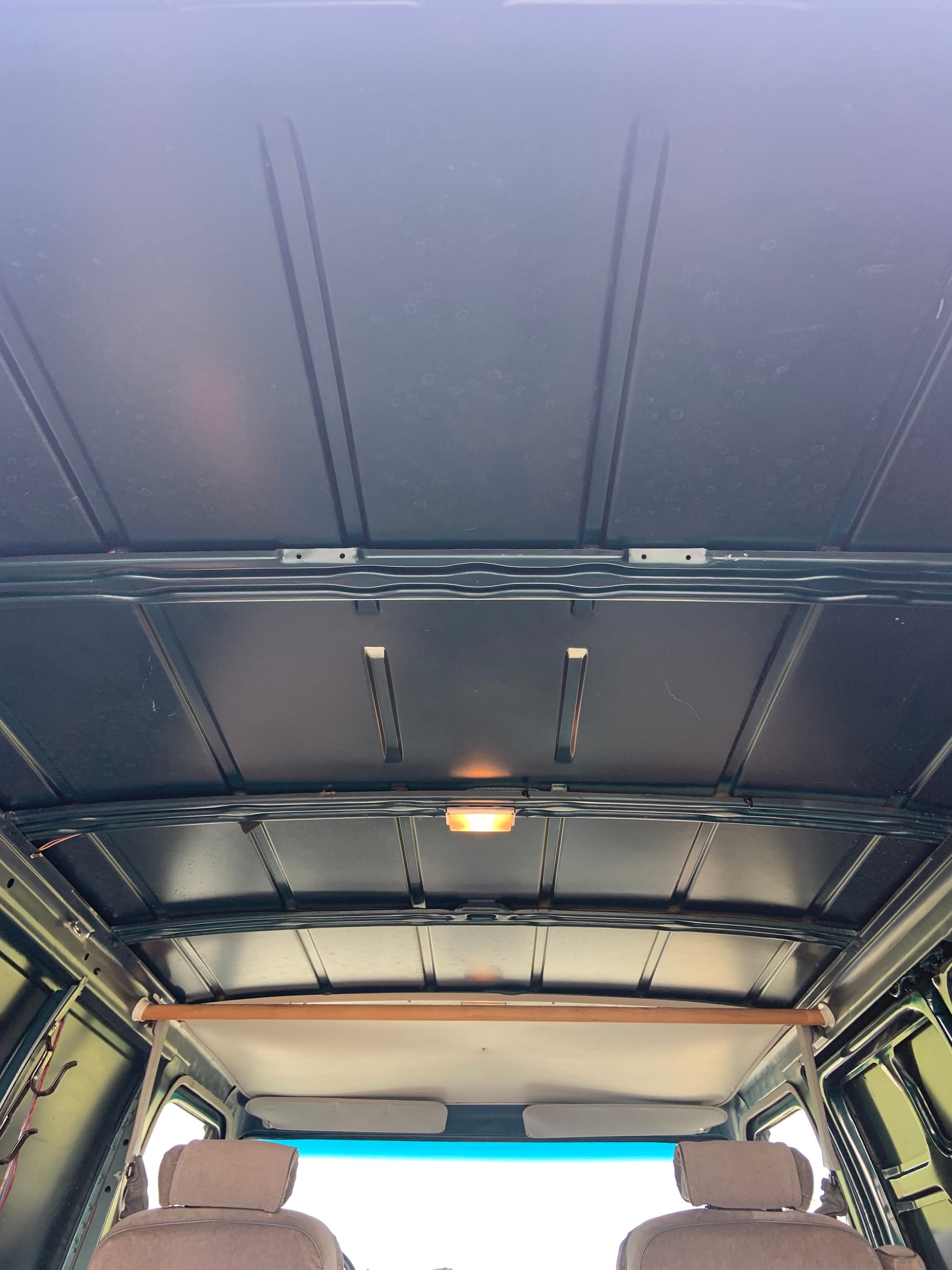This van has ZERO rust. The roof, roof gutters, and undercarriage are bone dry. The Emerald Green paint is 100% factory original, including all the body panels - no rust repairs or body repairs, ever.