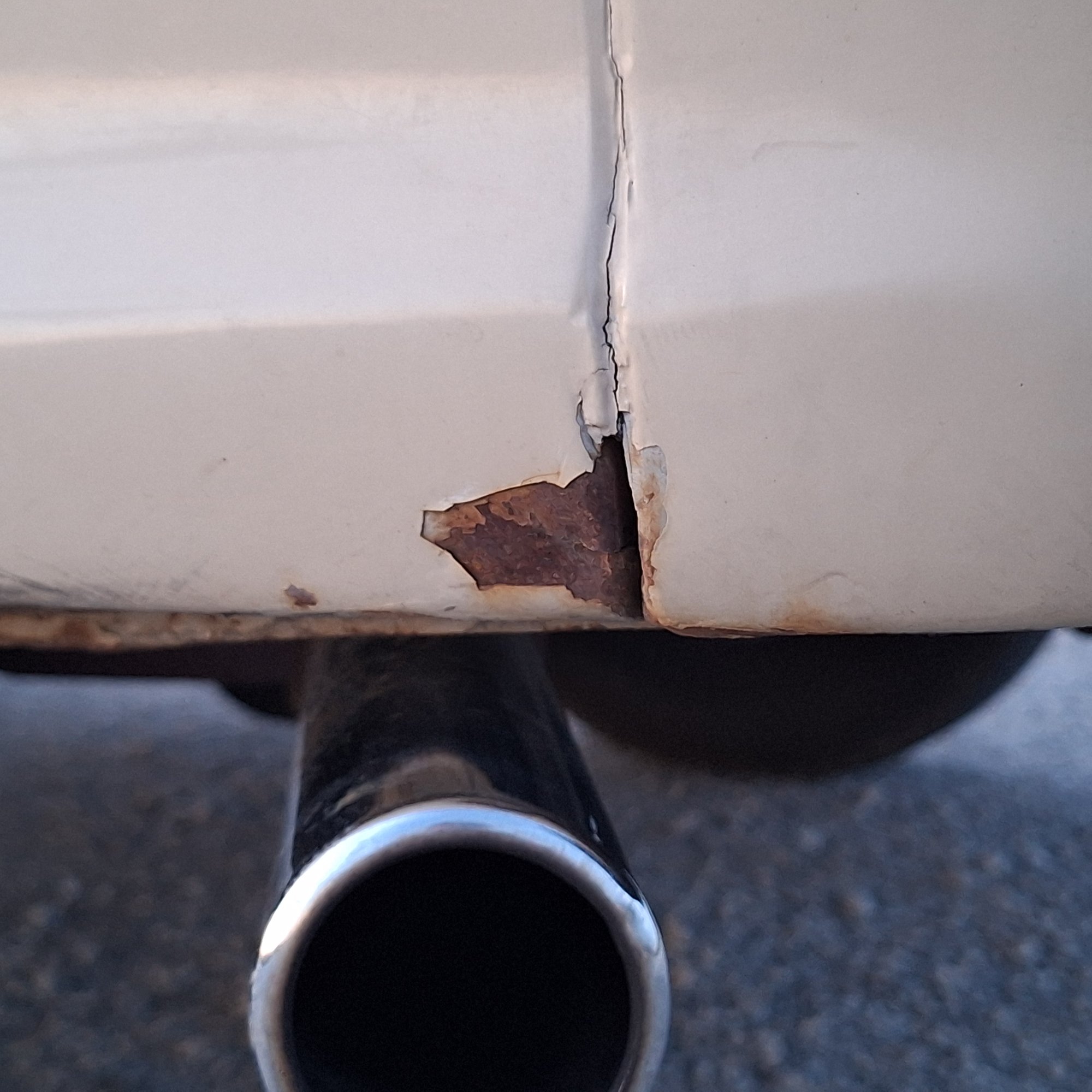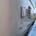This van has just the smallest amount of rust starting to bubble on the passenger side roof rail - see photos. There is one other area of rust on the interior, above the windshield pinch weld 8" long - looks like Safelite did a crap job installing a new windshield at some point (see photo). Only other small area to mention would be the rear driver side panel at the bottom, behind the wheel well, there is a very minor surface rust section about 1"x1.5" - see photos for location.