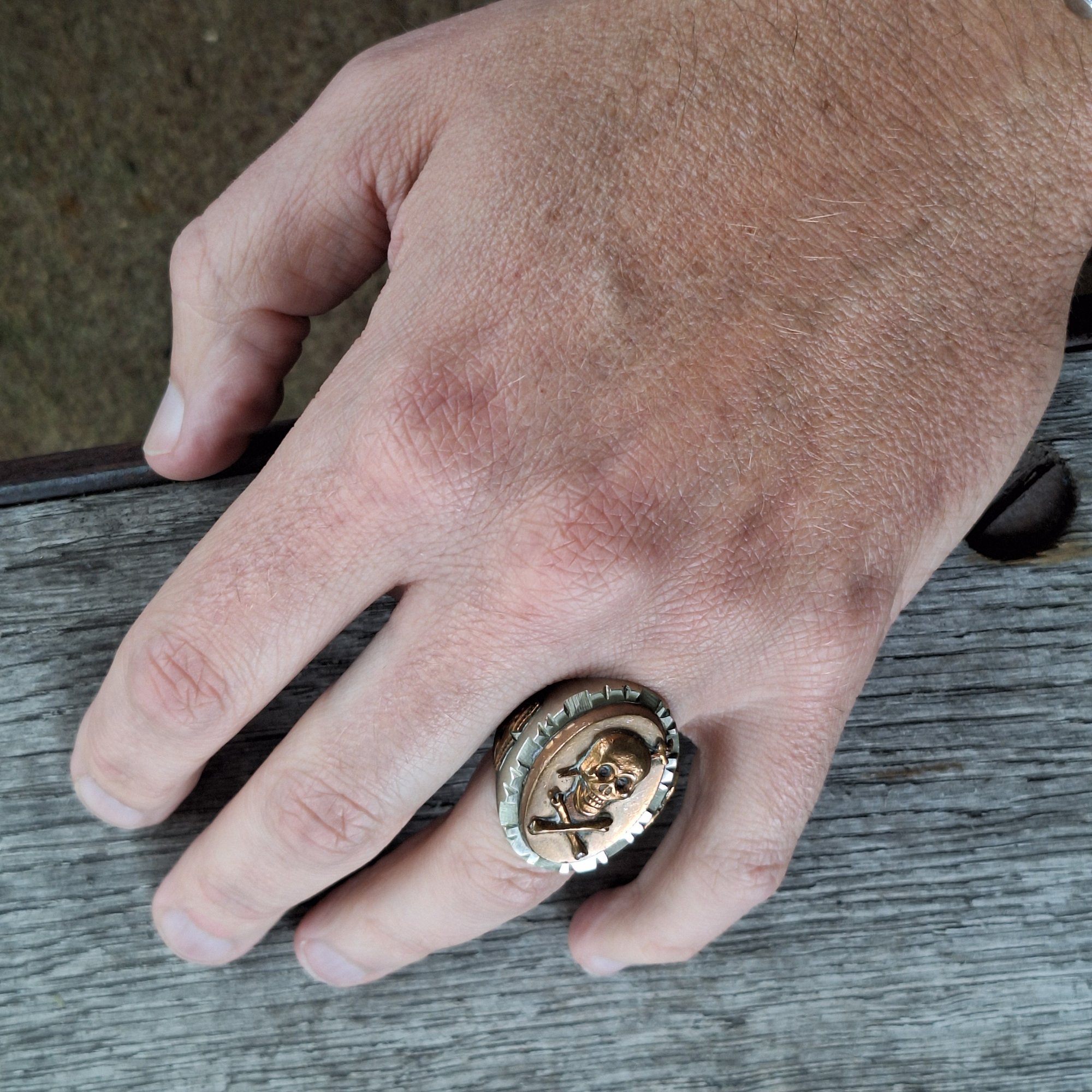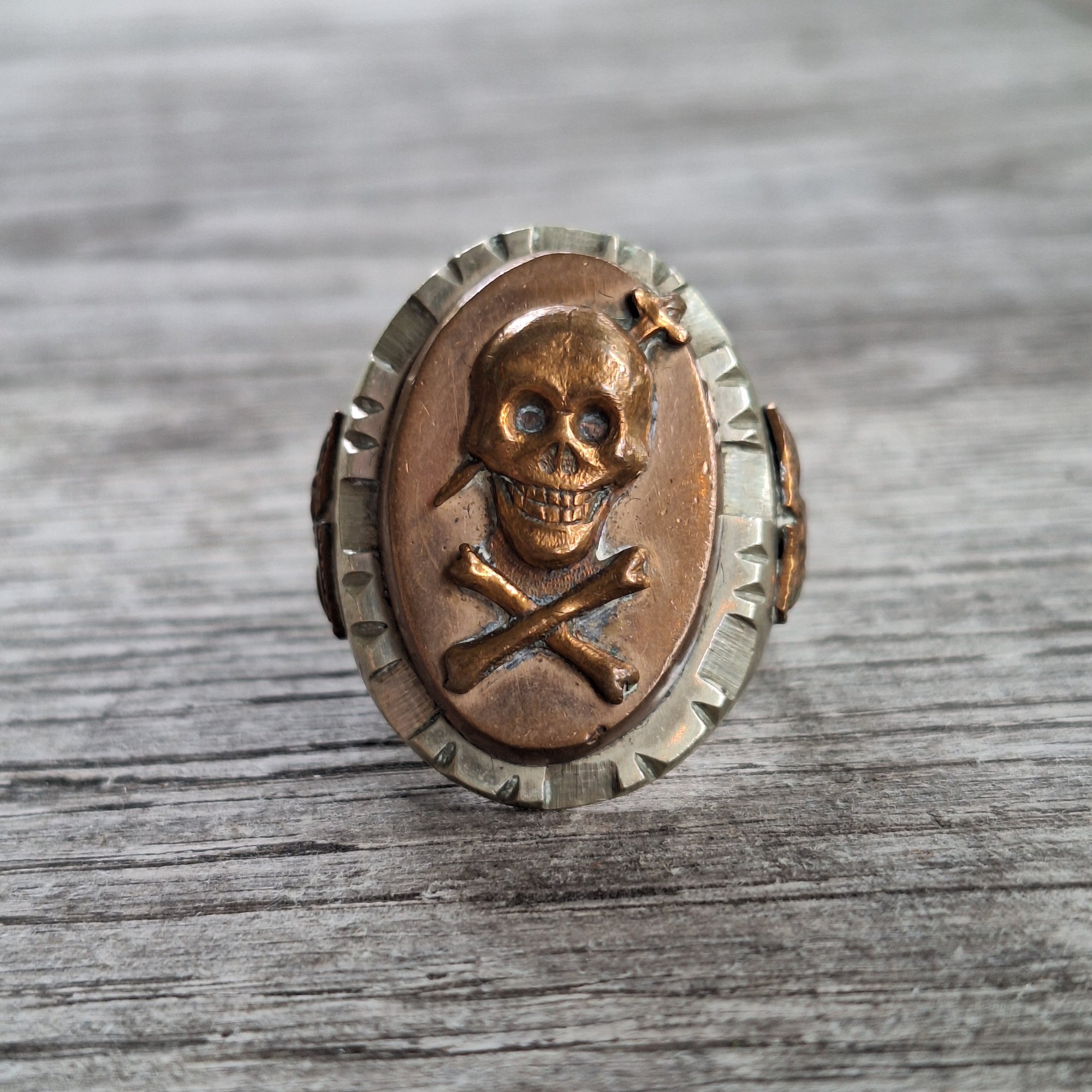 Grinning Skull w/ Dagger Ring, c. 1940s