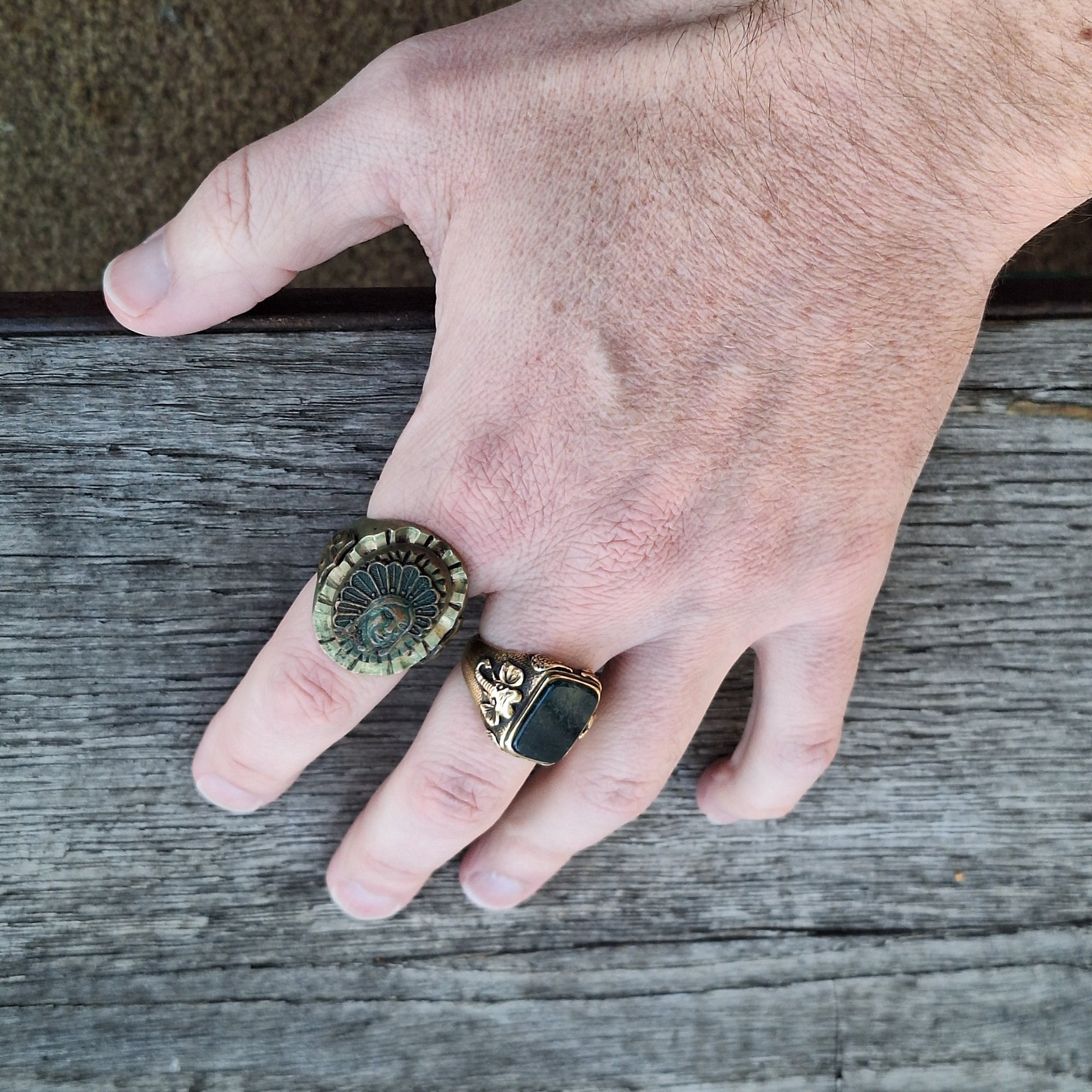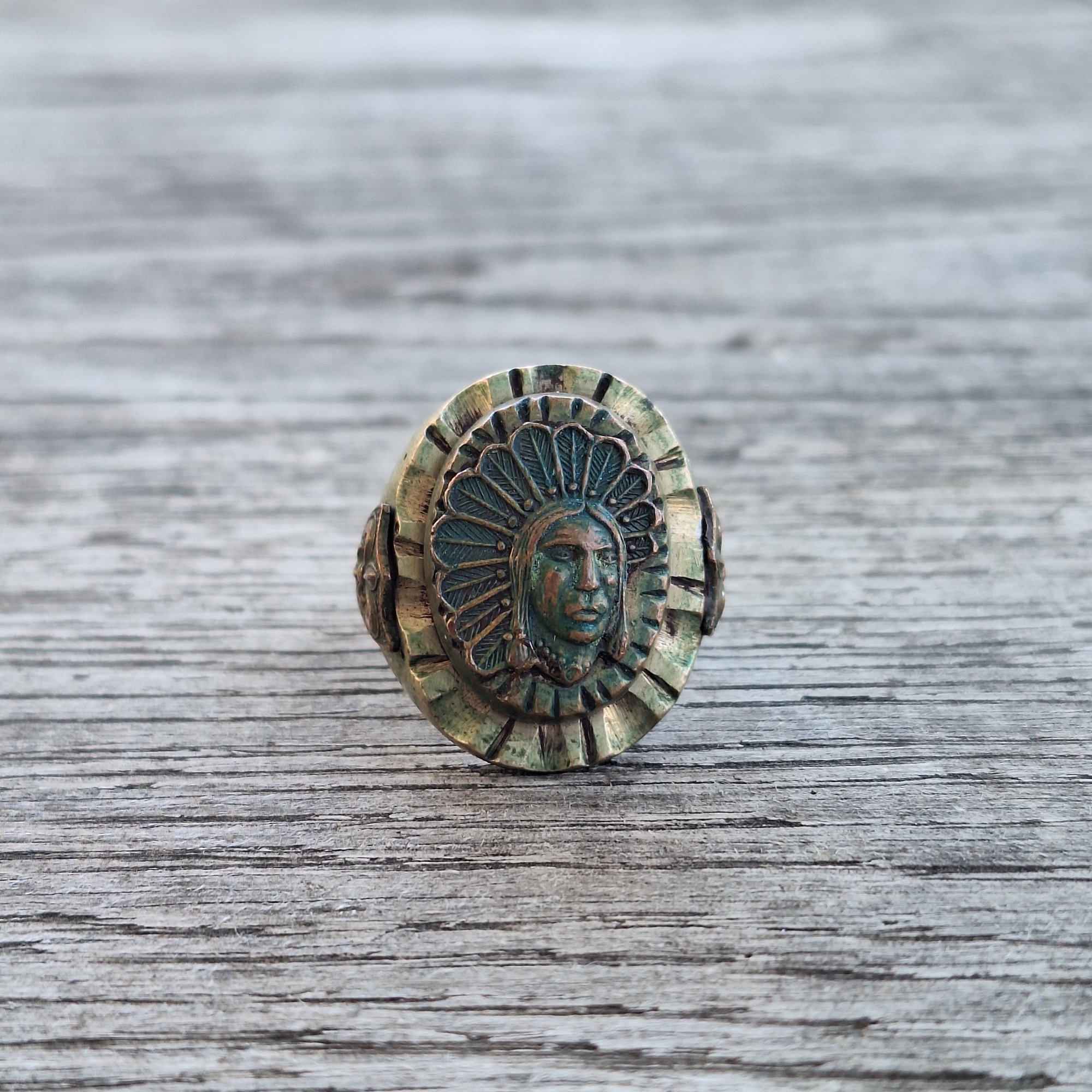 š® Heavy patina and verdigris throughout - ring will shine like new if you use the Man of Vintage cleaning method