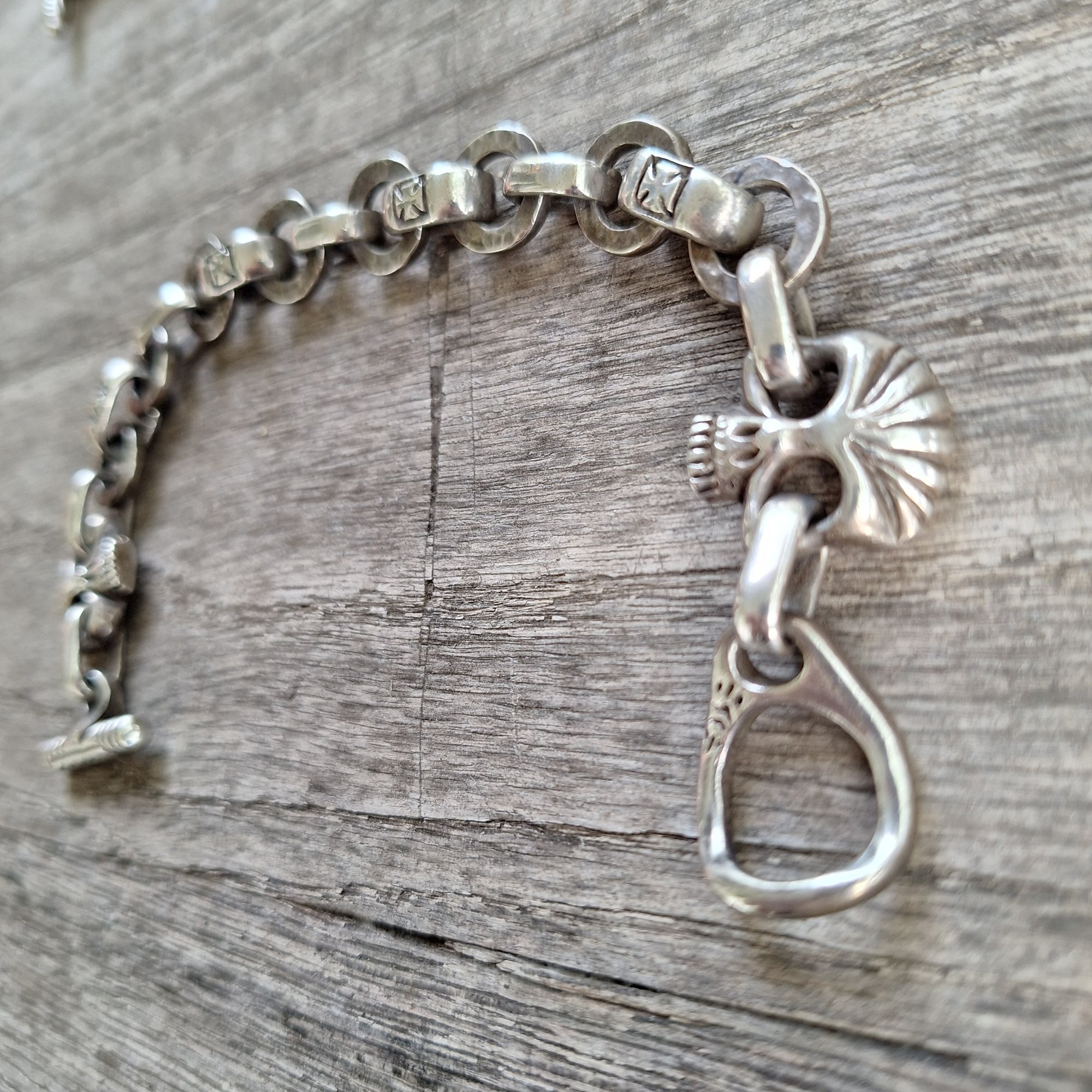 🔮 Custom one-of-a-kind handmade Tony Creed maltese skull bracelet with smooth oval links and alternating hammered links