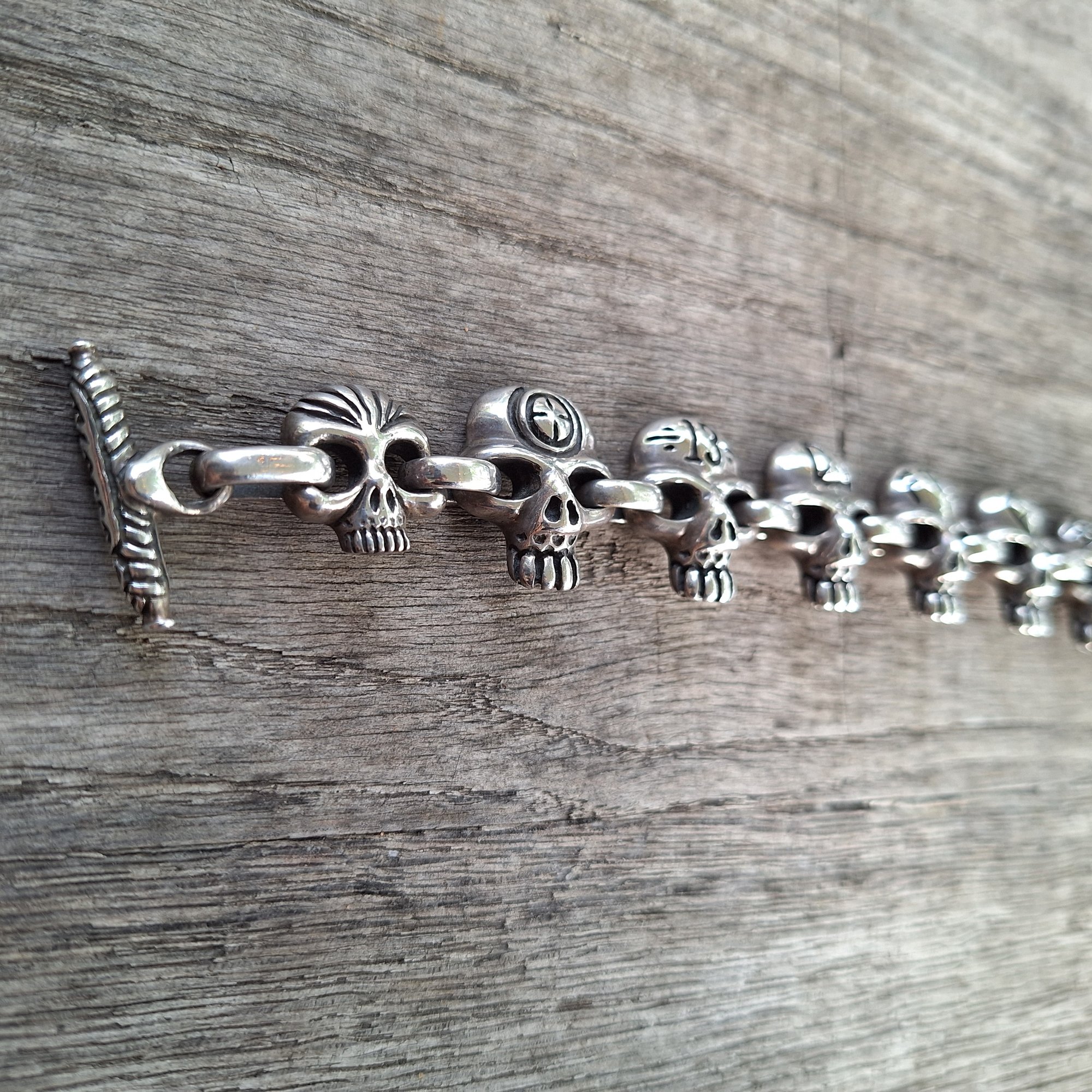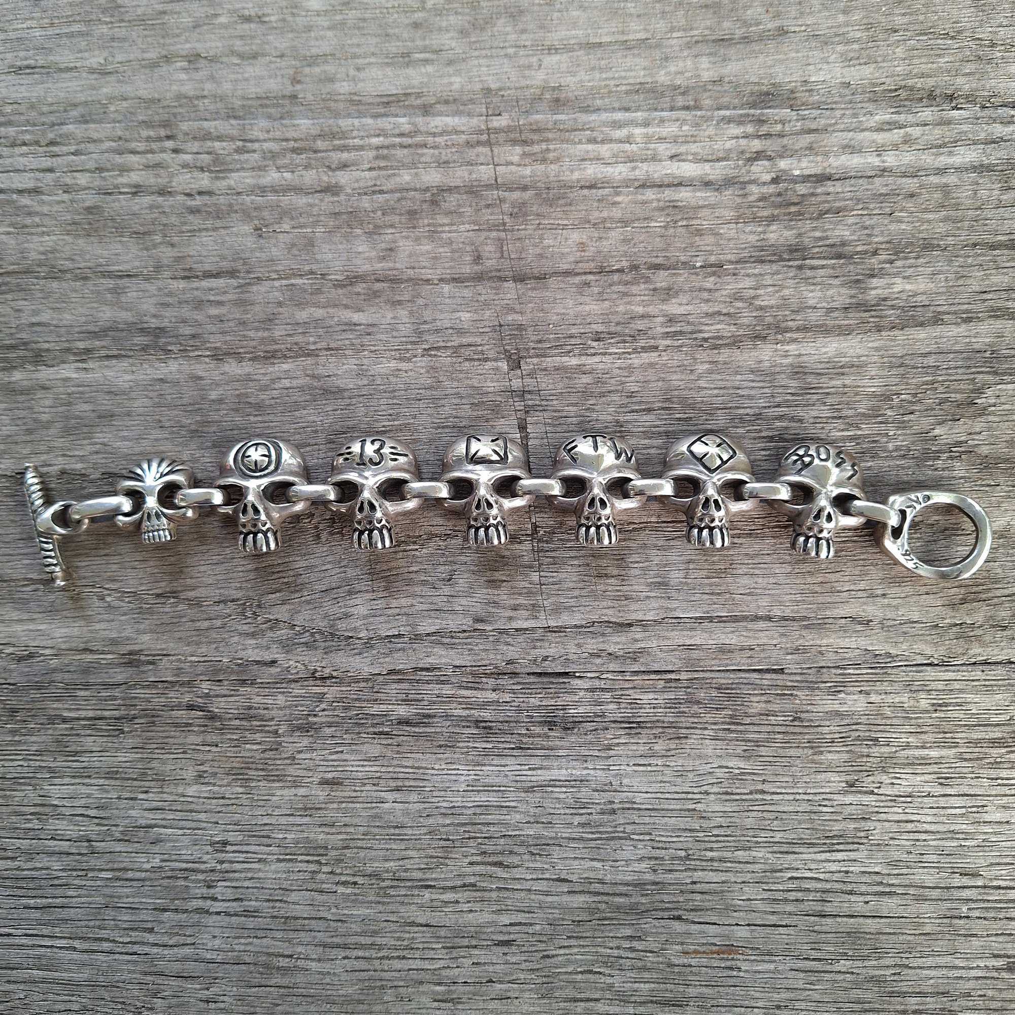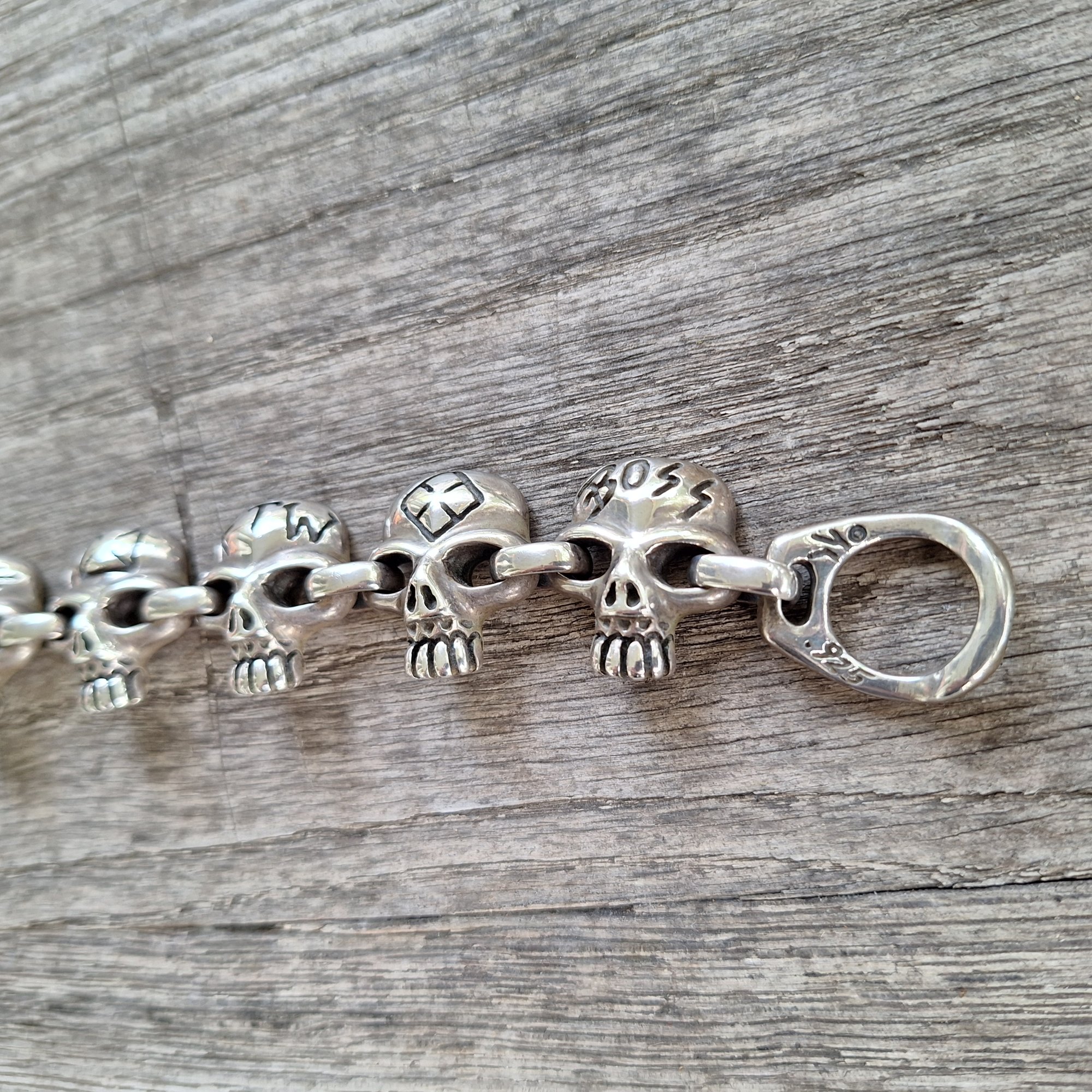 🔮 Custom one-of-a-kind handmade Tony Creed skull bracelet with engravings on the skull foreheads