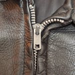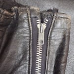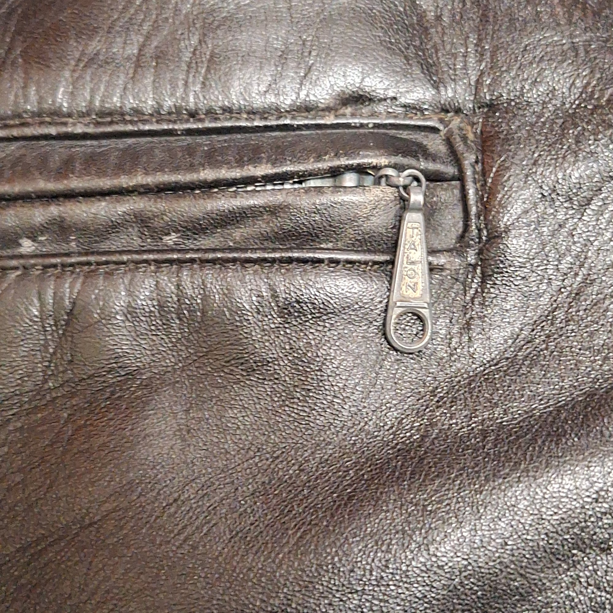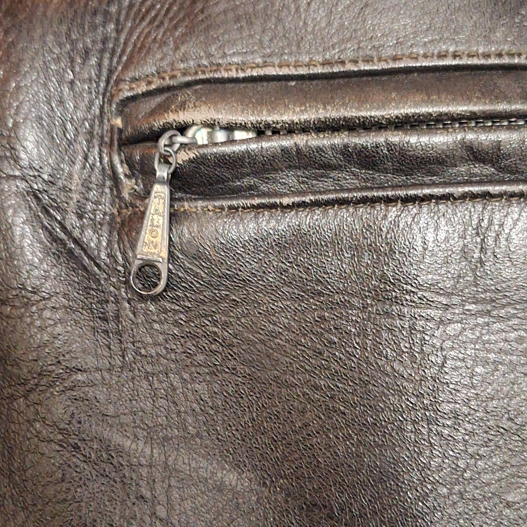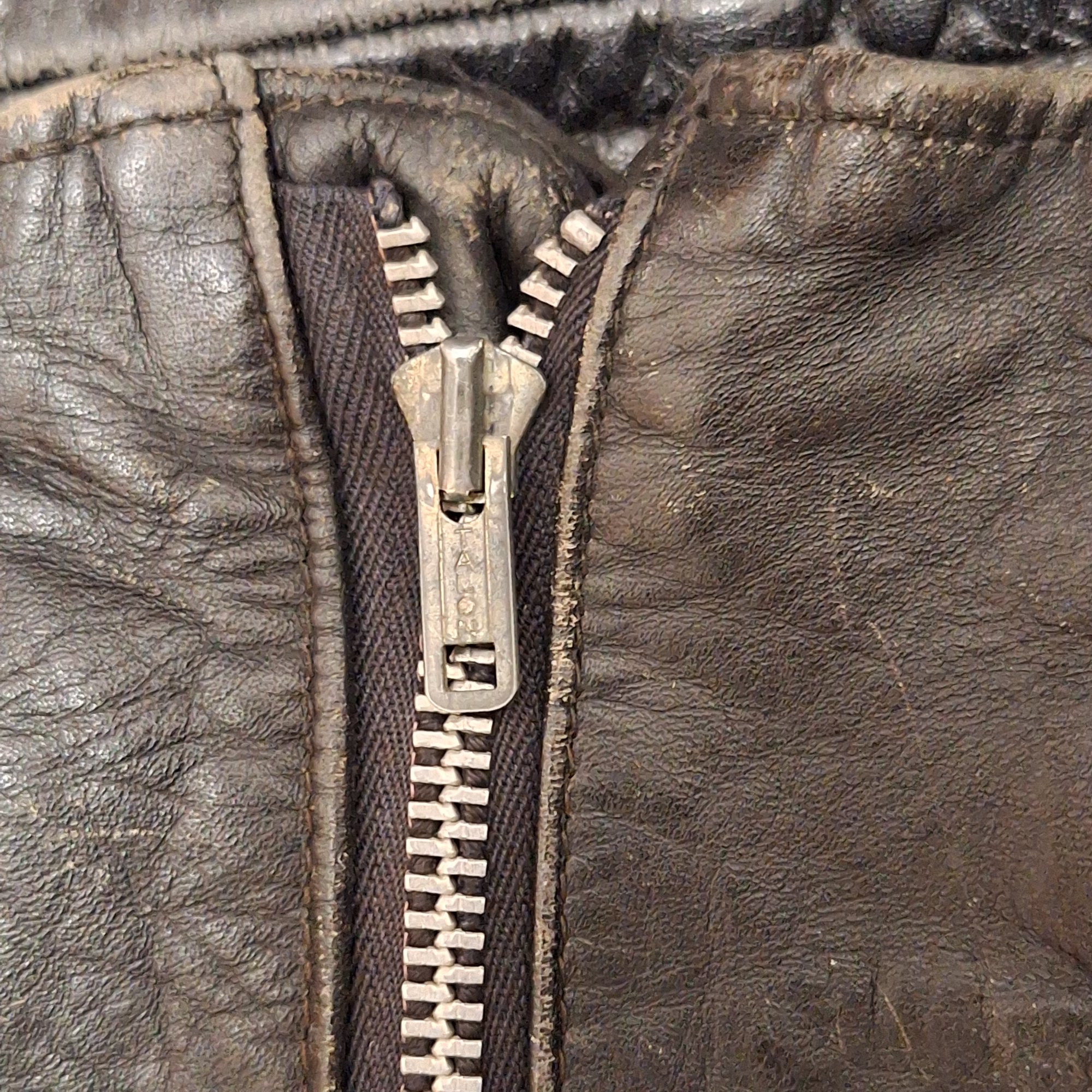 🔮 Vintage black steerhide leather cafe jacket. All zippers are Talon brand and all zippers function flawlessly. Male zipper at hem has very slightly started to pull away from wear - main zip still functions well.